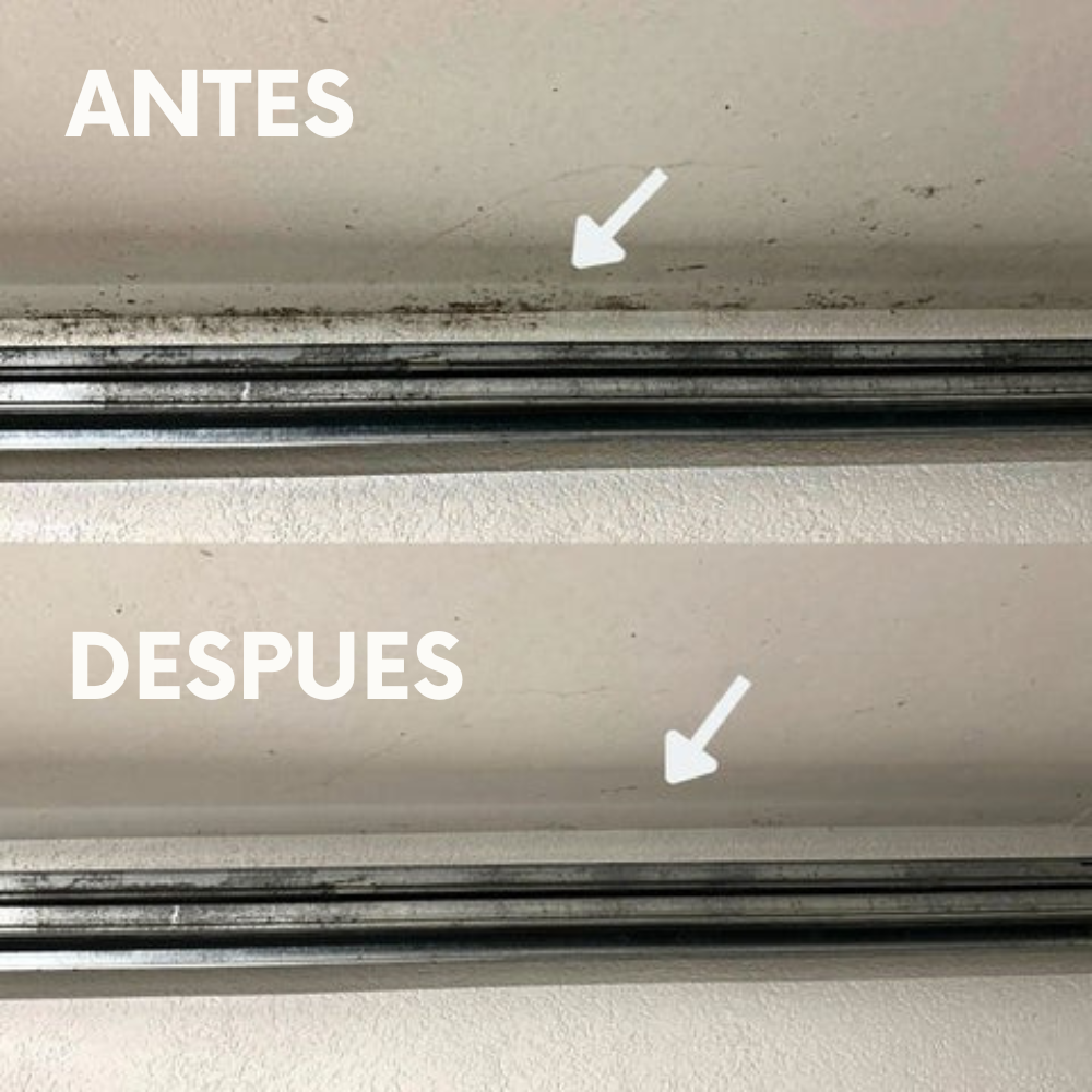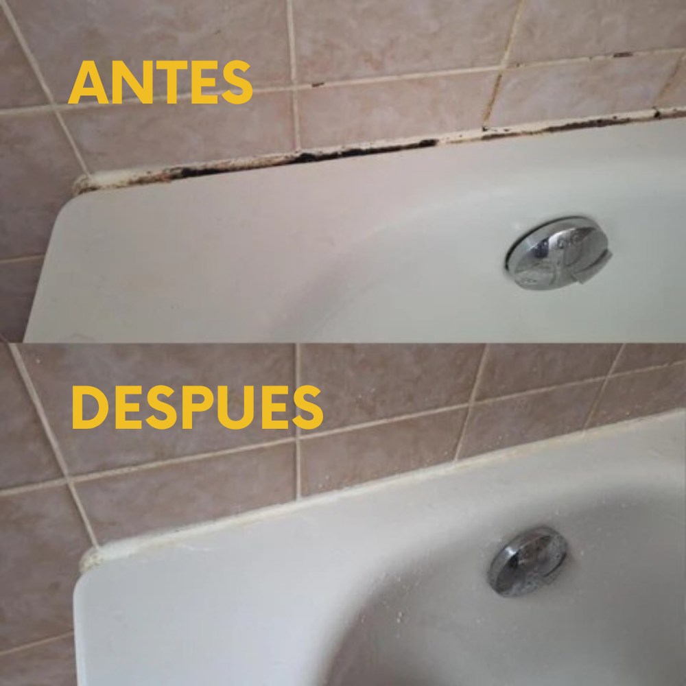 No daña la silicona y elimina eficazmente las esporas de moho.