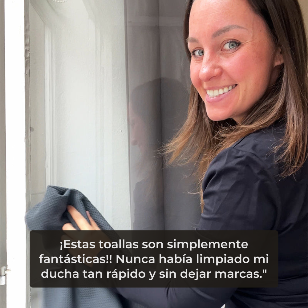 - Secar sin dejar marcas ni cal en las paredes de la ducha, espejos, cristales y azulejos
